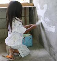 to grow as a natural protection from wind and sun. The community area offers new seating accommodation, while stairs, windows and walls appear in fresh and vibrant colors.The colors are not only a joy for the eye but will keep termites at bay. At the time of the construction, the CCC had already served its purpose of facilitating meetings and gatherings, for larger and smaller occasions. Villagers and children came together with volunteers to work on the centre and home stay families greeted their guests in the community area.