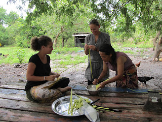 After that we came back to the village and learnt how to make Thai desert with Pi-Noi. We cooked sticky rice in freshly grated coconut milk and wrapped in a banana leaf, the Thai way.