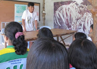 For example, if a local resident needs some wood to build his lodge, he is allowed to cut a tree, but for cutting one he has to replace five new ones. And commercial use is strictly prohibited, this encourages people to think and be responsible. After a question and answer session everybody was looking forward to the activity: bamboo-rafting. Each bamboo raft held 3-6 people plus two ferrymen who navigated the canoe with a long bamboo stick.